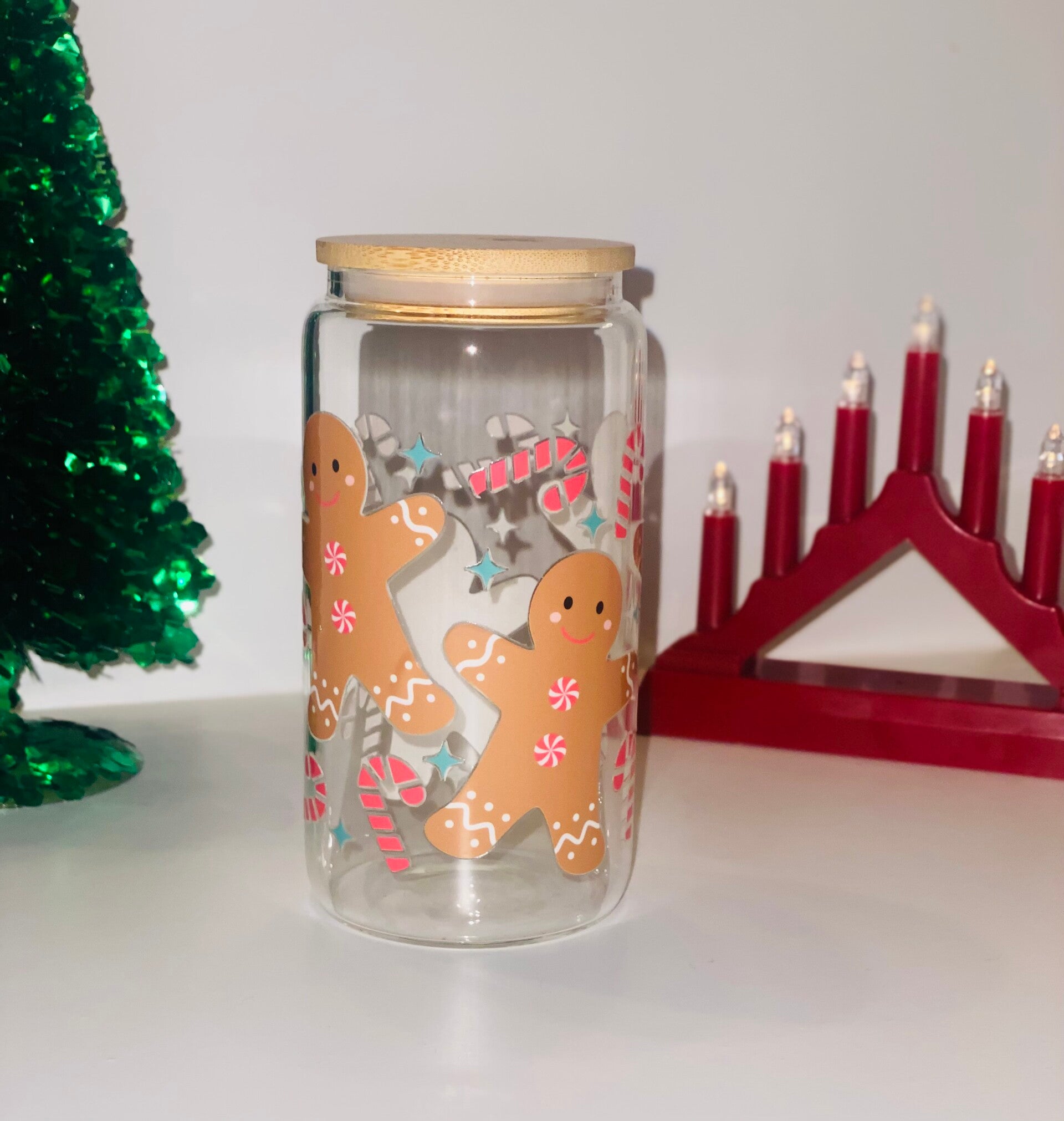 Kerst Drinkbeker met Bamboe Deksel – Bedrukt met Feestelijke DTF-print