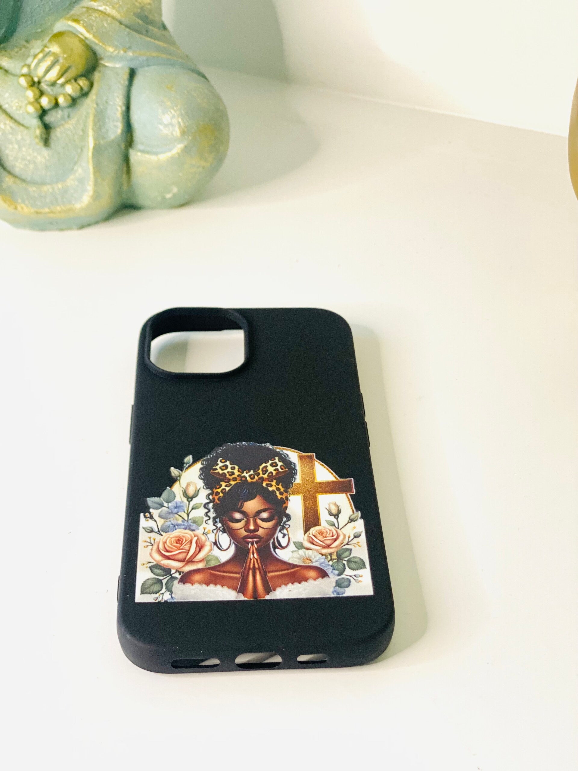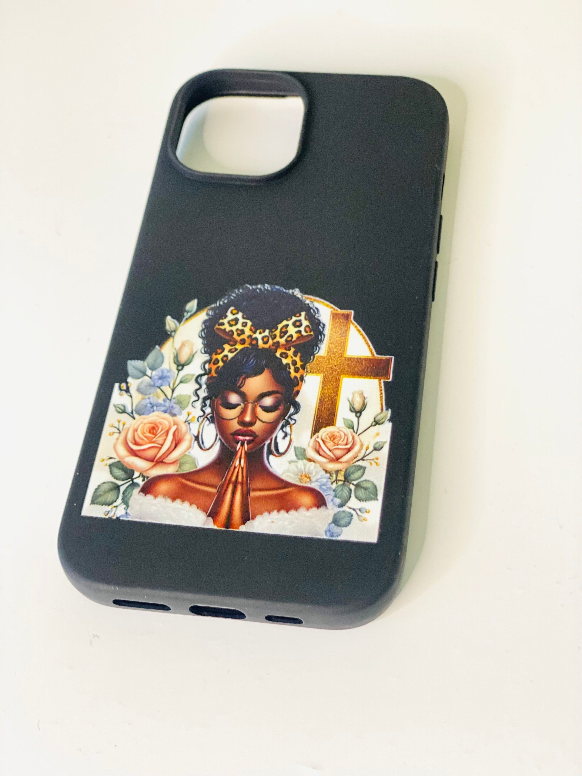 Bescherm je telefoon in stijl met deze unieke iPhone 12- 12 pro hoes, bedrukt met een prachtige DTF-print van een biddende vrouw. Dit design straalt rust, kracht en spiritualiteit uit – perfect voor wie schoonheid en betekenis wil combineren in een dagelijks accessoire.