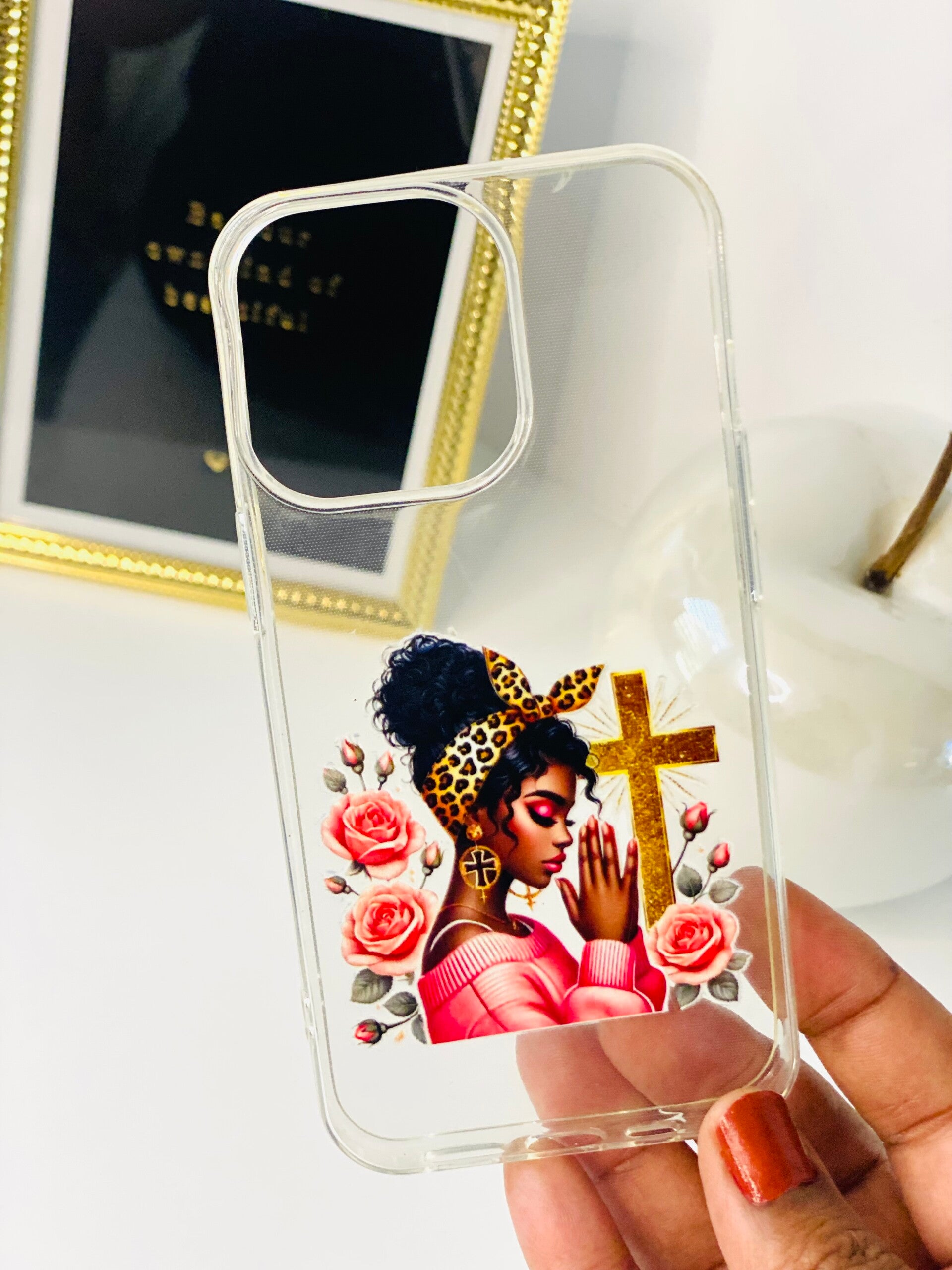 De case is versierd met UV DTF transferstickers die waterdicht zijn, waardoor de ontwerpen lang meegaan zonder te vervagen, zelfs bij intensief