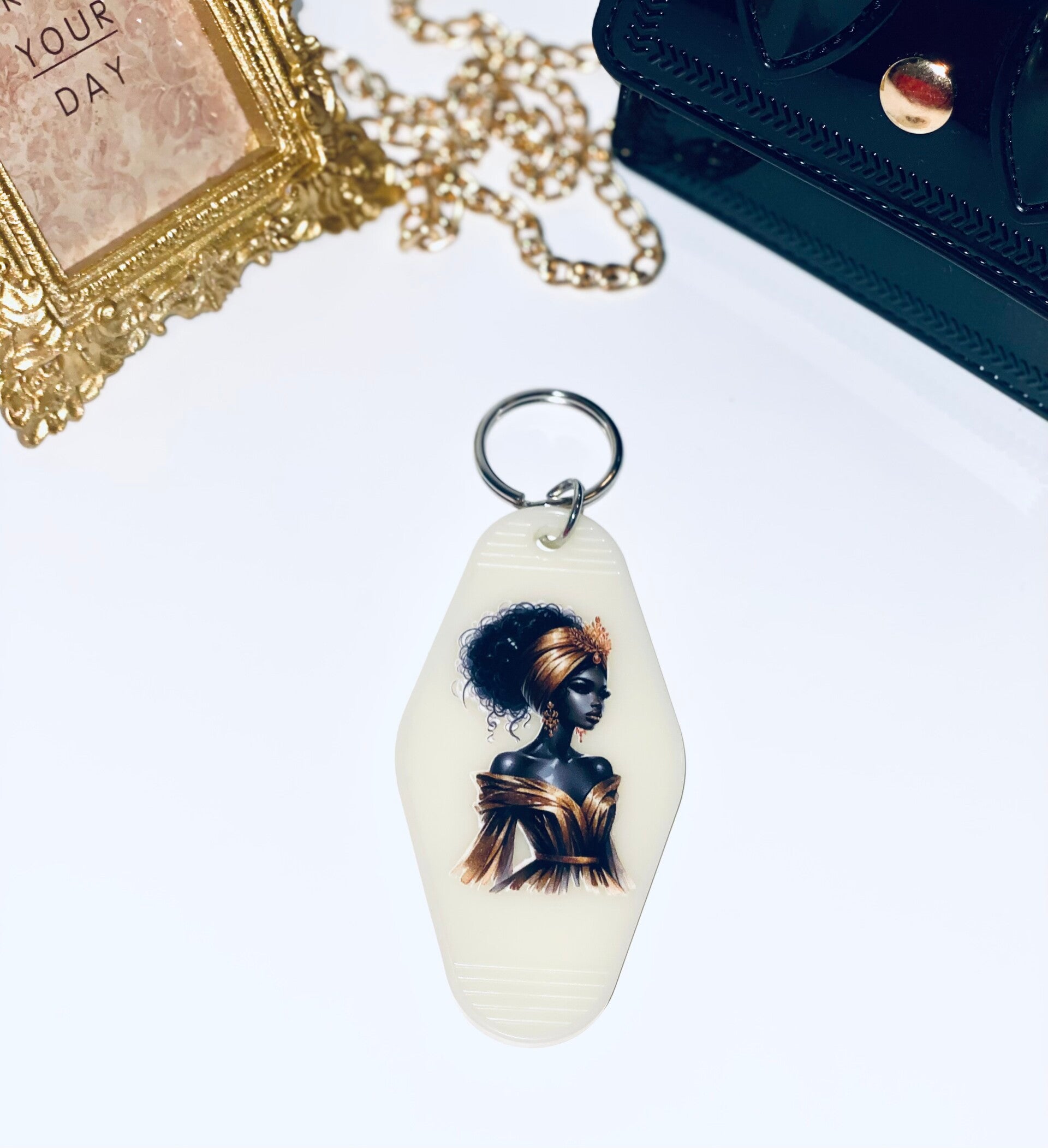 Retro Motel Keychain – Vintage Sleutelhanger met Afrikaanse vrouw DTF-print