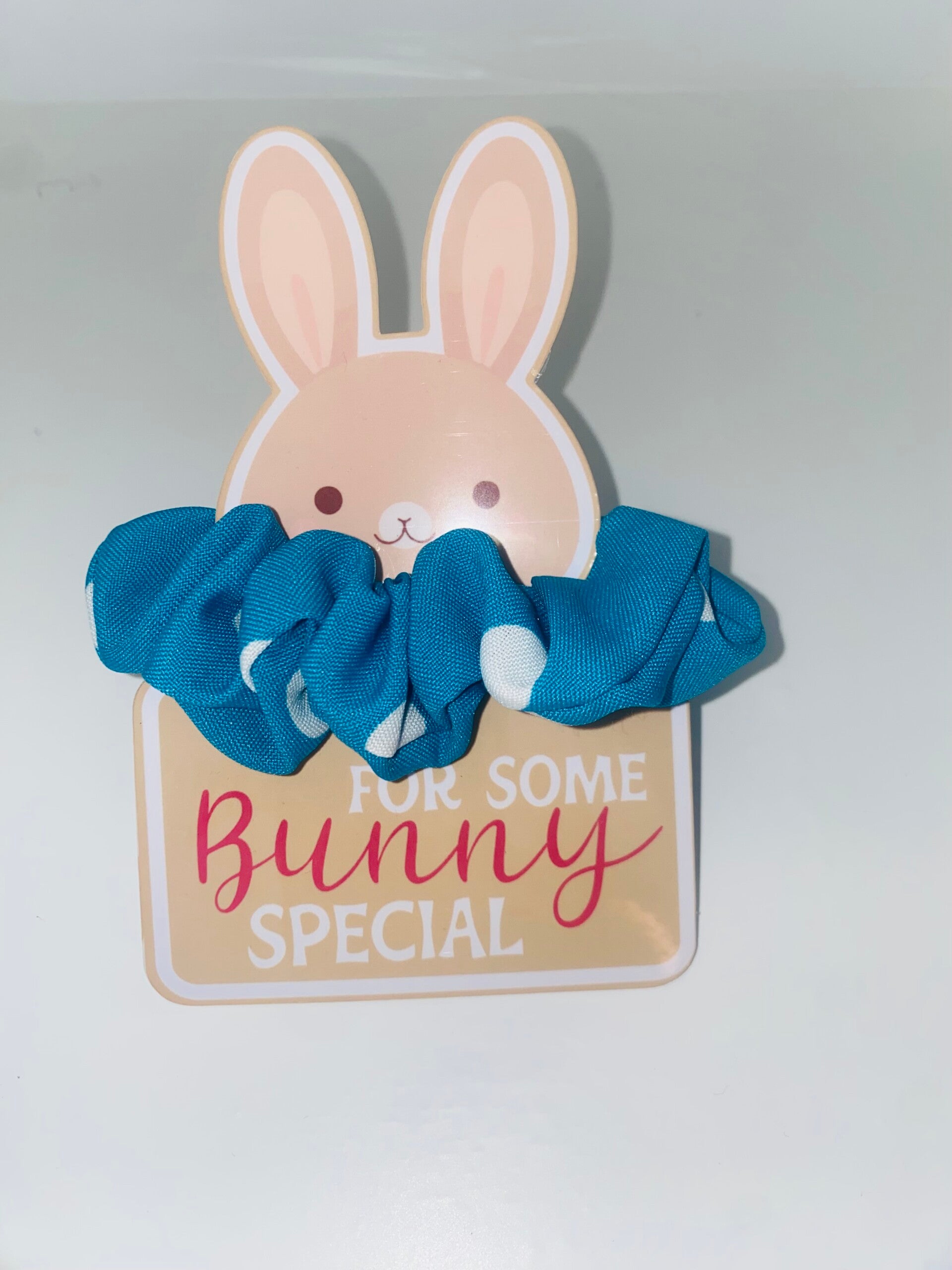 Ga voor tijdloze elegantie met deze handgemaakte blauwe scrunchie met speelse witte stippen. De perfecte combinatie van klassiek en trendy, geschikt voor zowel alledaagse looks als chique gelegenheden.
