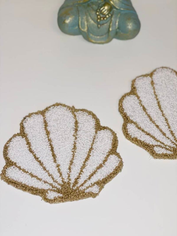 Breng de rust van de zee in huis met deze handgemaakte punch needle wanddecoratie in de vorm van een schelp. De zachte, organische lijnen en natuurlijke kleuren maken dit stuk perfect voor een boho, strand- of coastal interieur.