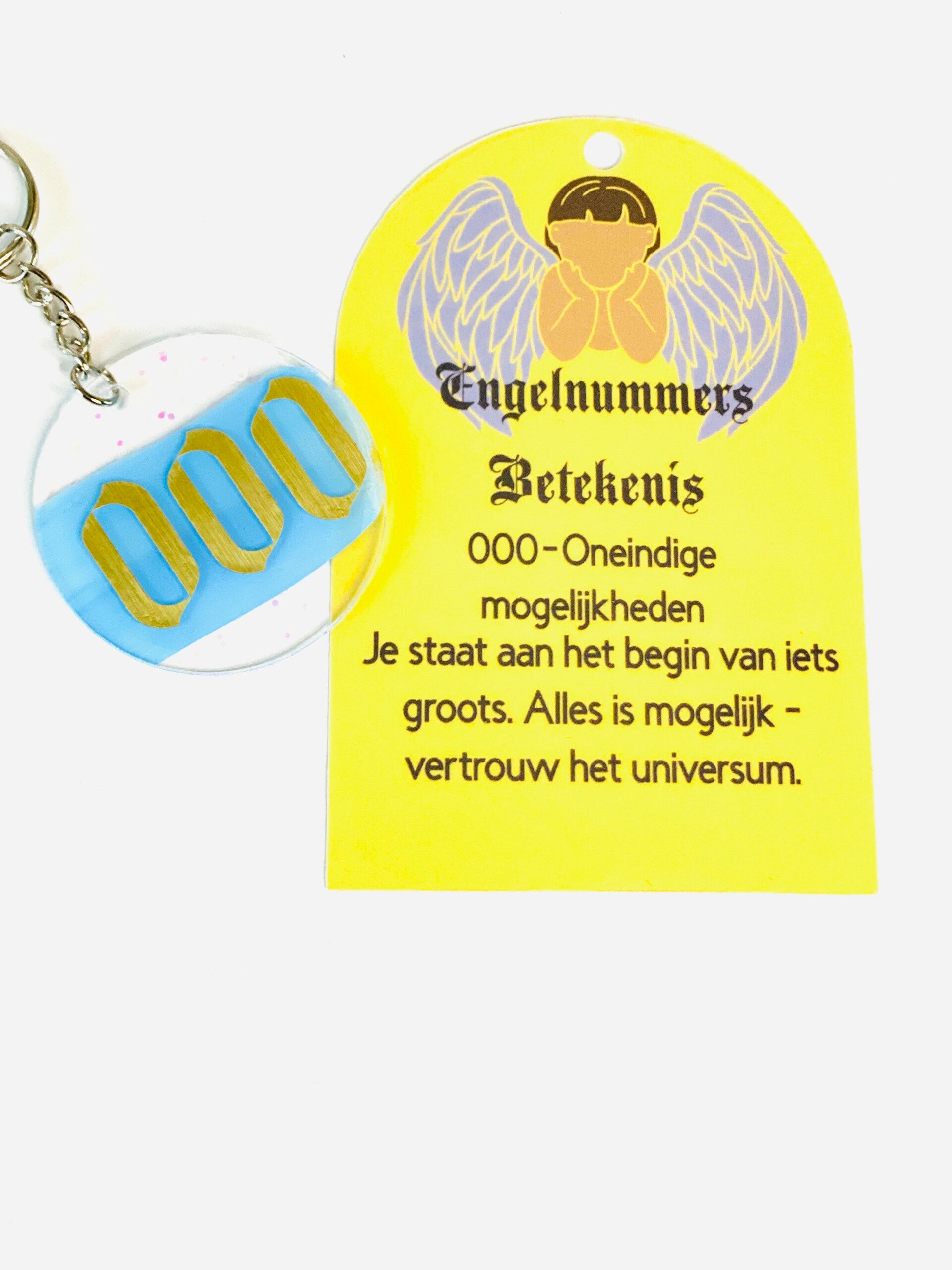 Ronde Sleutelhanger met Beschermengel – Naam in Vinyl – Nummer 000