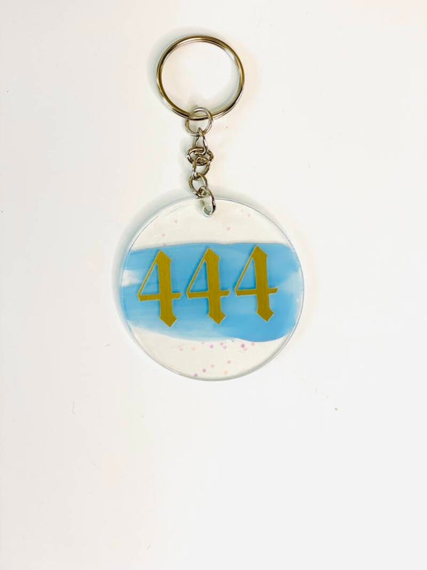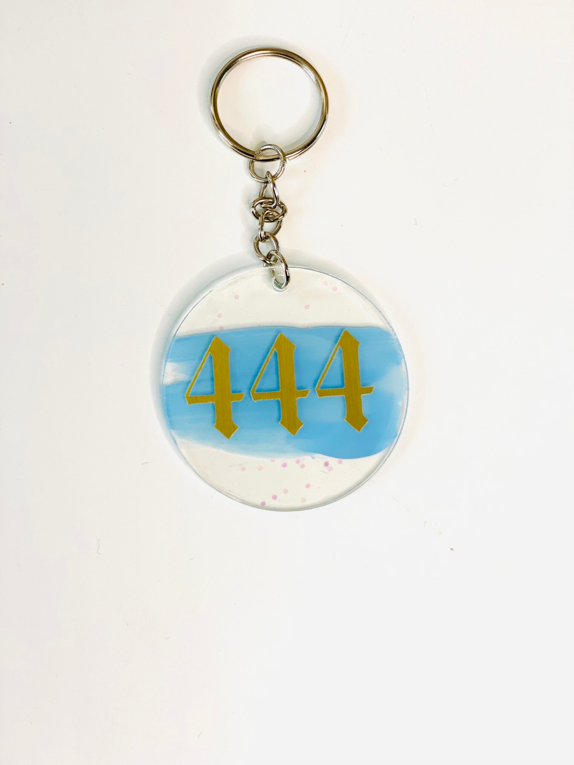 Ronde Sleutelhanger met Beschermengel – Naam in Vinyl – Nummer 444