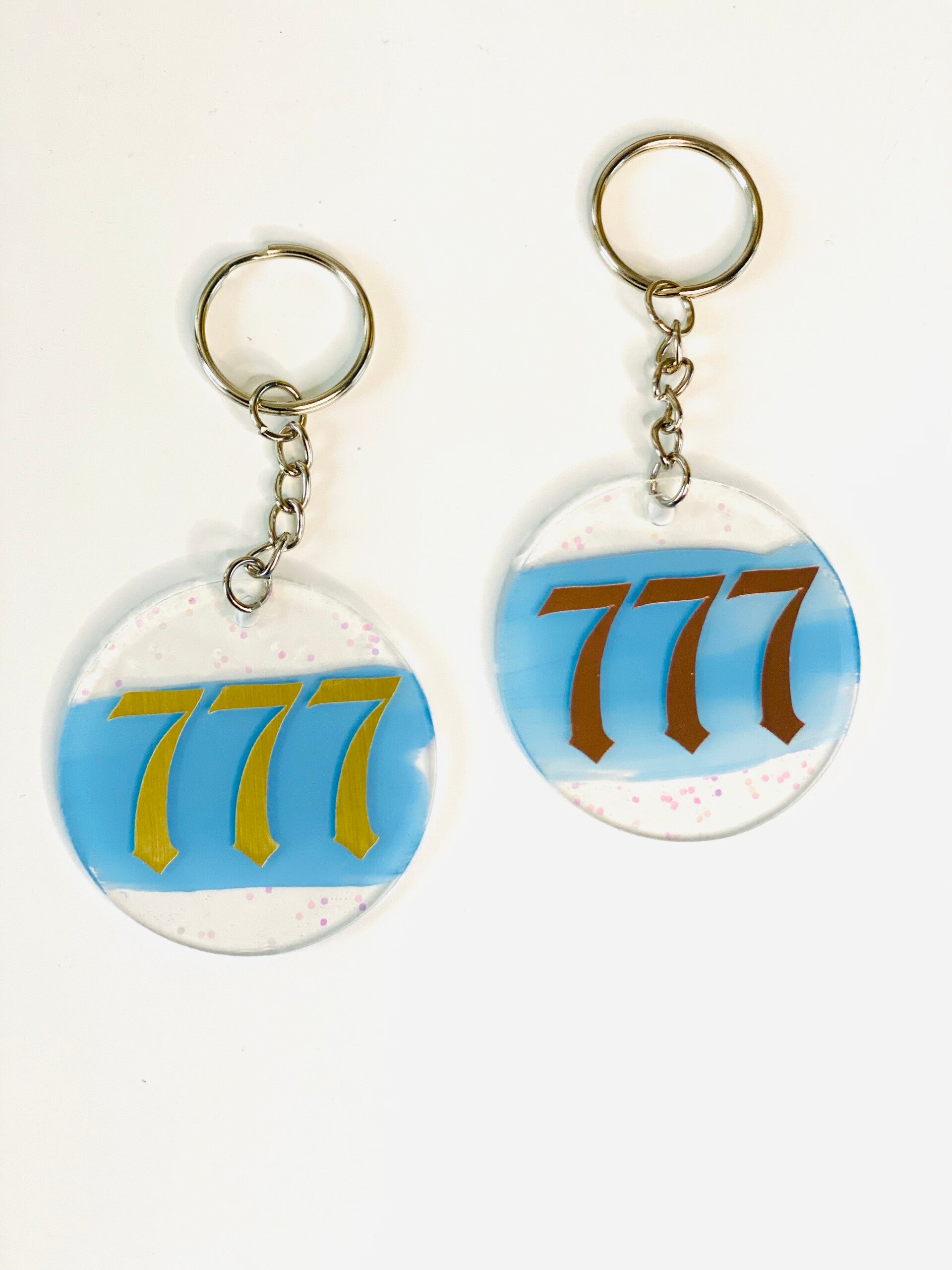 Ronde Sleutelhanger met Beschermengel – Naam in Vinyl – Nummer 777