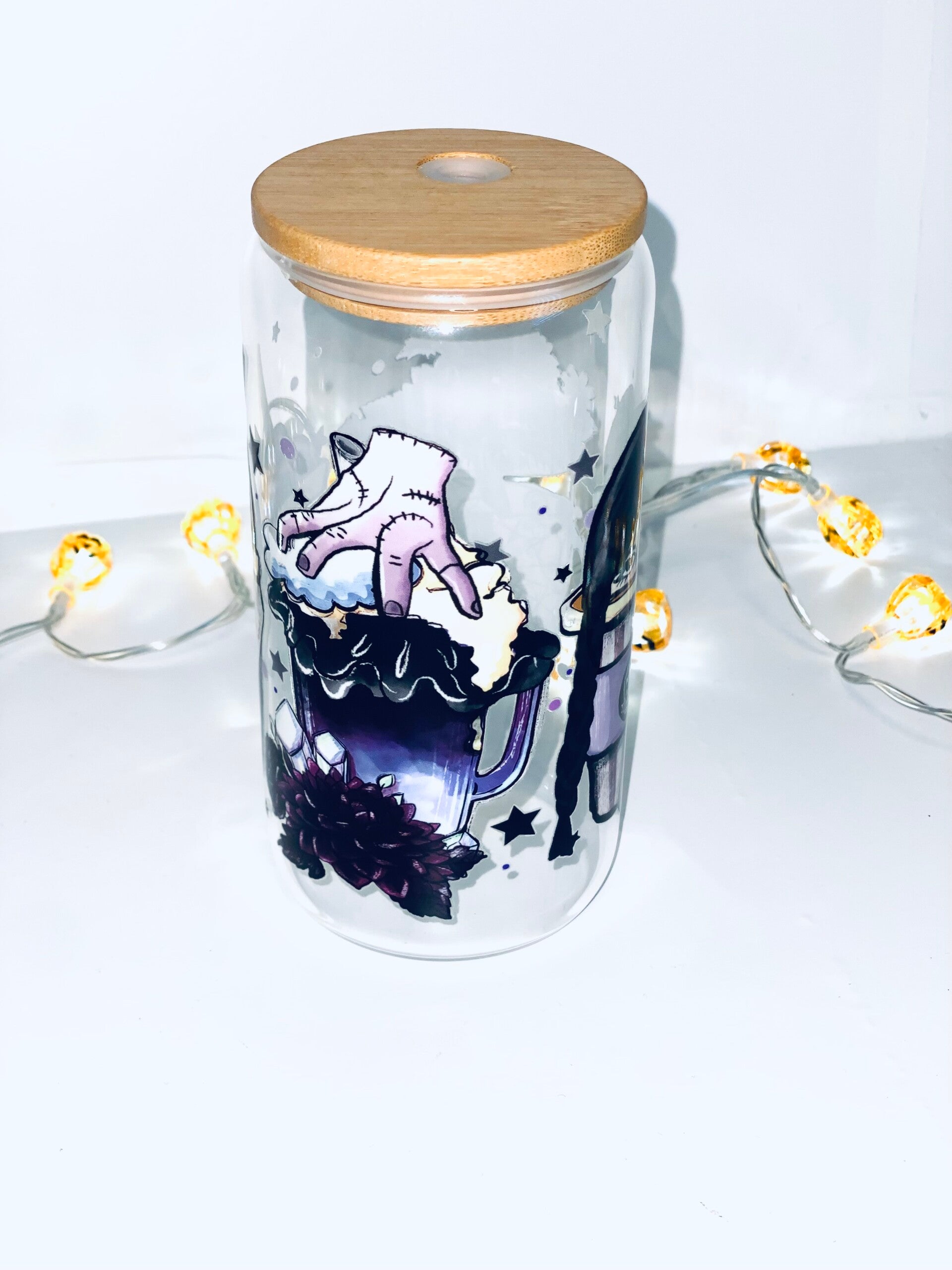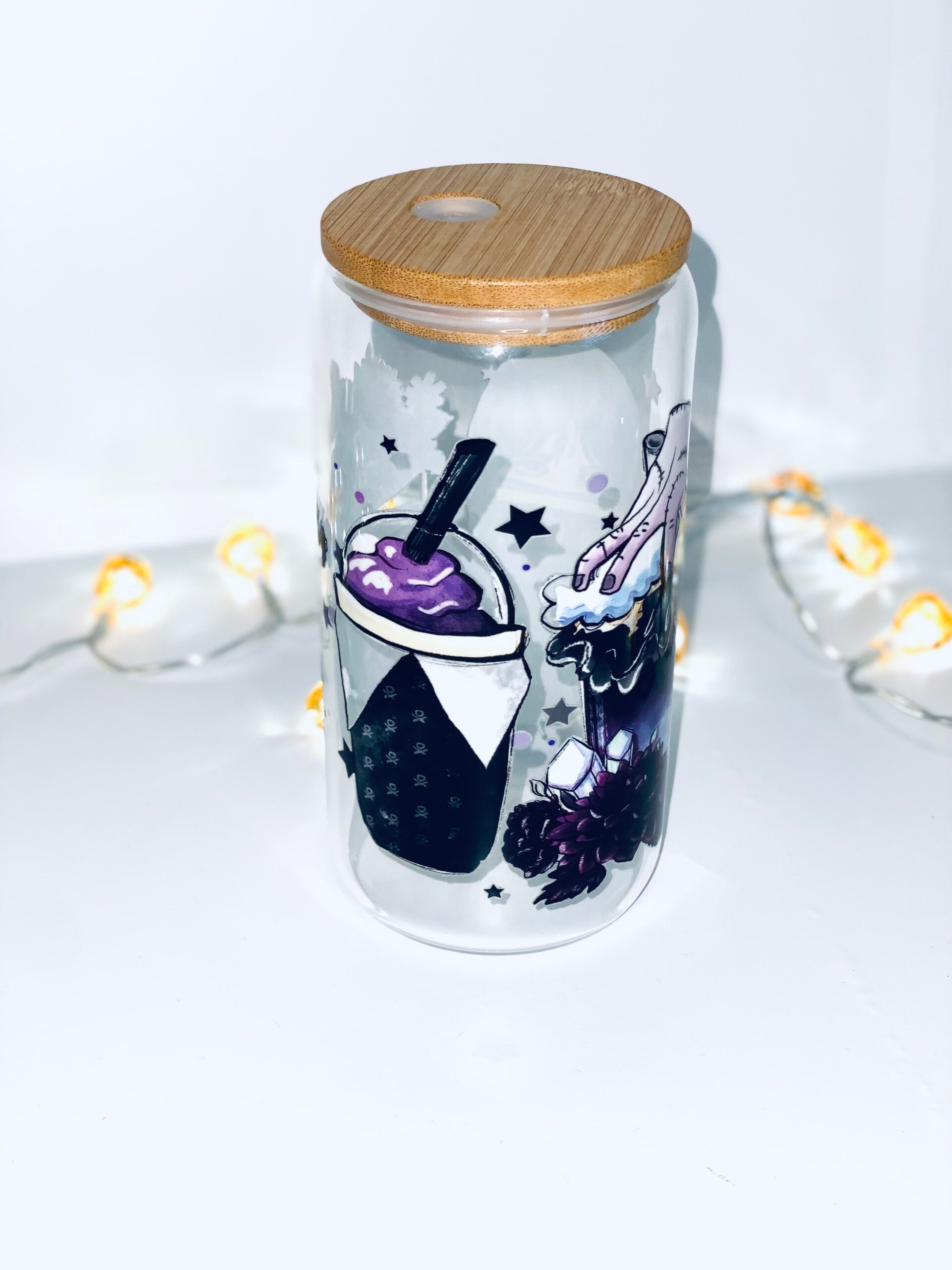 Ben jij fan van Wednesday en de mysterieuze wereld van de Addams Family? Dan is deze herbruikbare drinkbeker een echte must-have! Gemaakt van stevig glas met een bamboe deksel en herbruikbaar rietje, perfect om jouw favoriete koude drankjes in stijl te drinken.
