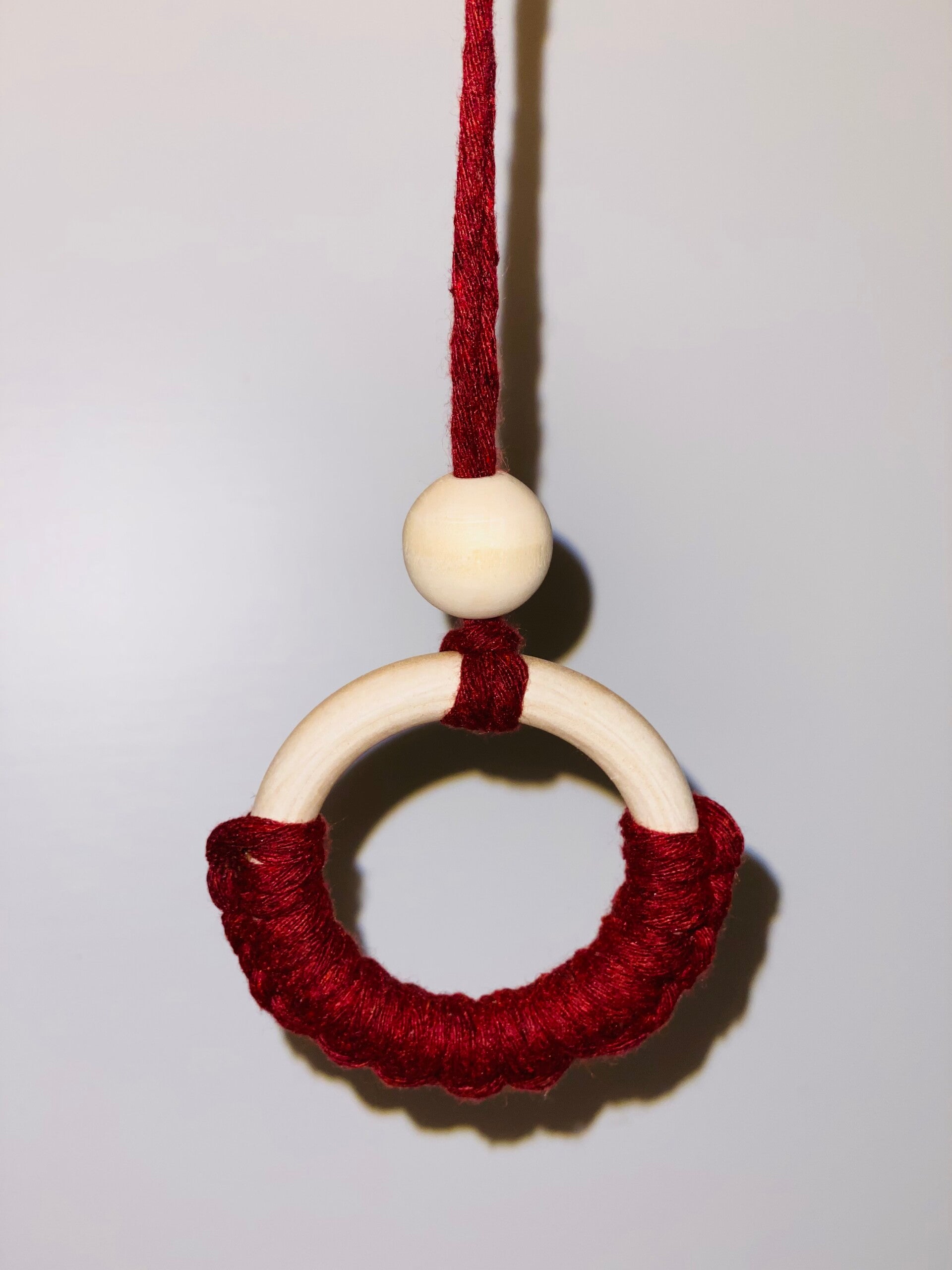 Elke macramé ring is met de hand geknoopt en zorgvuldig afgewerkt, waardoor elk exemplaar uniek is. Ideaal als geurhanger in de auto of als stijlvolle decoratie in huis.