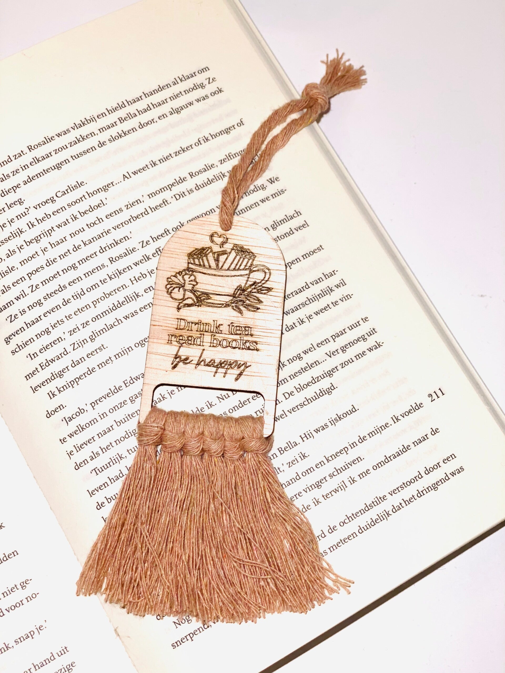 Deze houten bladwijzer met macramé touw is met zorg en liefde handgemaakt én zelf uitgesneden met een laserprinter. Elk exemplaar wordt nauwkeurig gegraveerd met een leuke, inspirerende tekst, wat de bladwijzer niet alleen praktisch maakt, maar ook persoonlijk en uniek.
