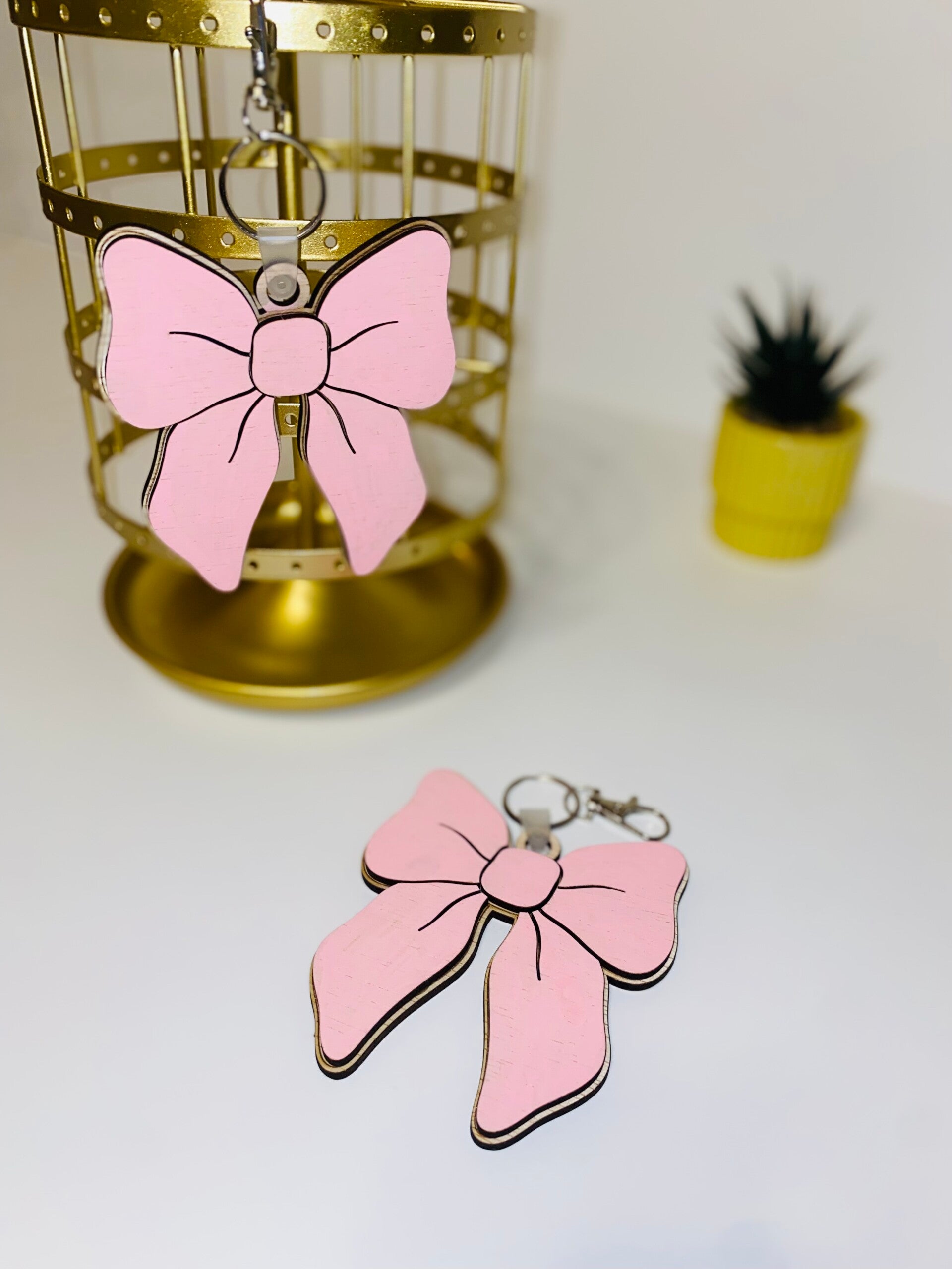 🎀 Handgemaakte Roze Strik Sleutelhanger | Hout Gelaserd & Handgeverfd | Uniek Cadeau