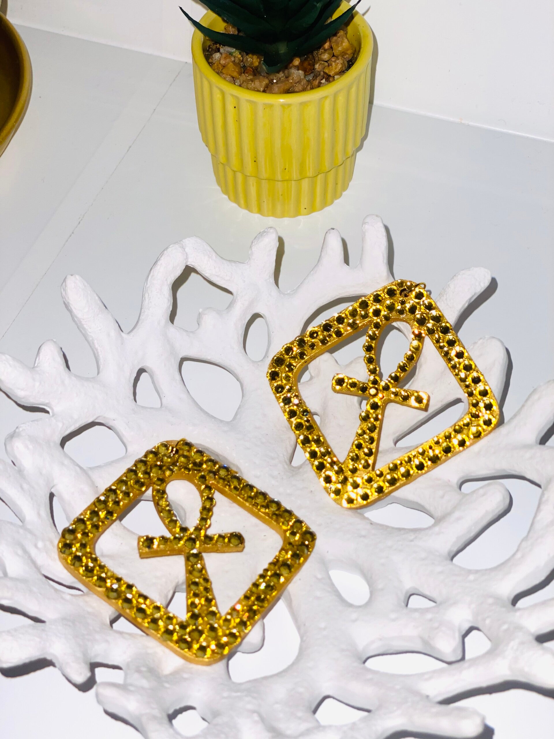 Deze bijzondere Ankh oorbellen zijn een krachtige combinatie van symboliek, ambacht en creativiteit. Het iconische Ankh-symbool, afkomstig uit het oude Egypte, staat voor leven, bescherming en eeuwige energie.