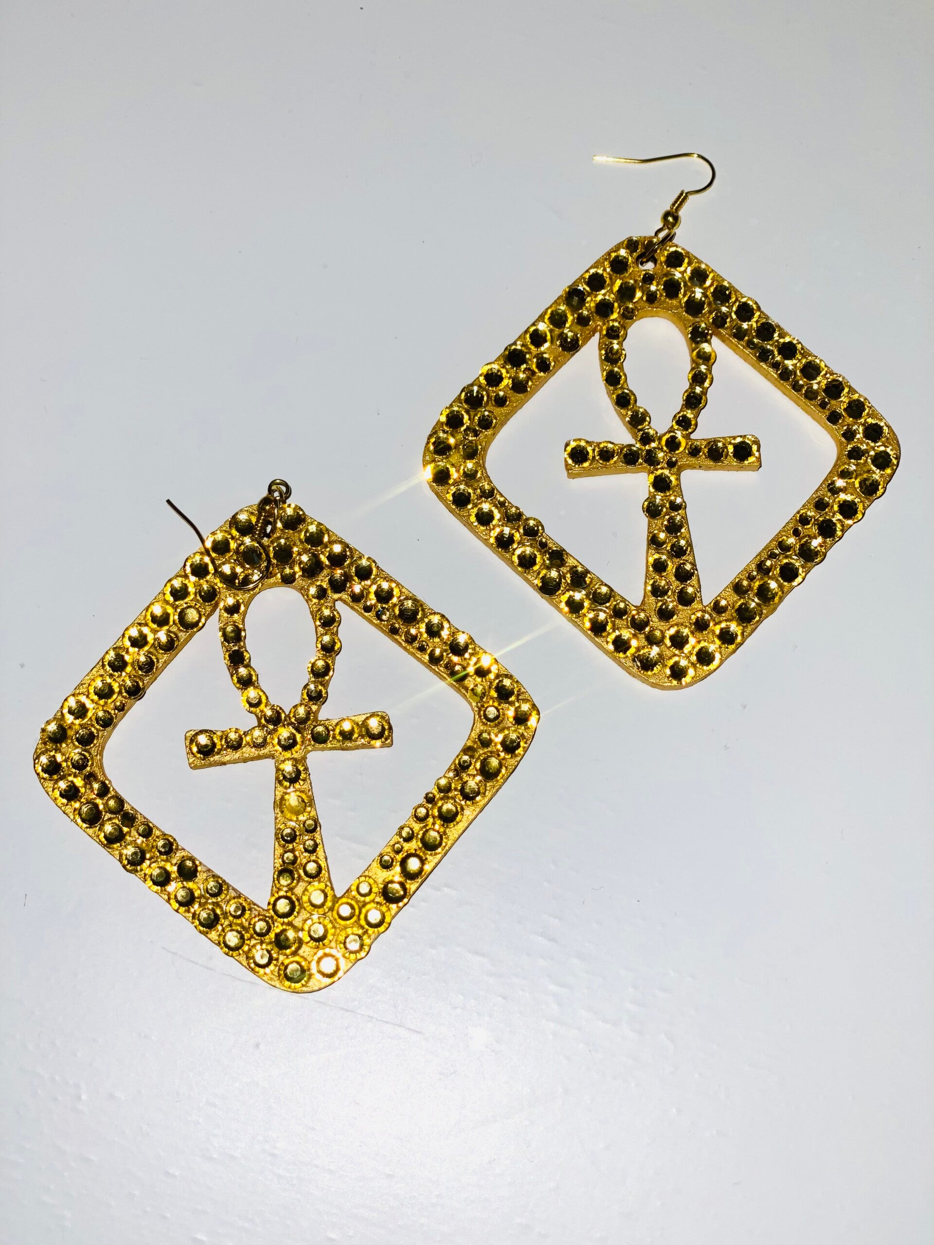 Handgemaakte Ankh Oorbellen – Uitgelaserd & Met de Hand Geverfd | Egyptisch Symbool van Leven | Unieke Statement Sieraden