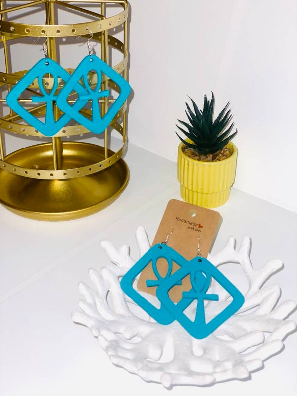 Houten Statement Ankh Oorbellen | Laser Cut & Hand Painted | Egyptisch Symbool