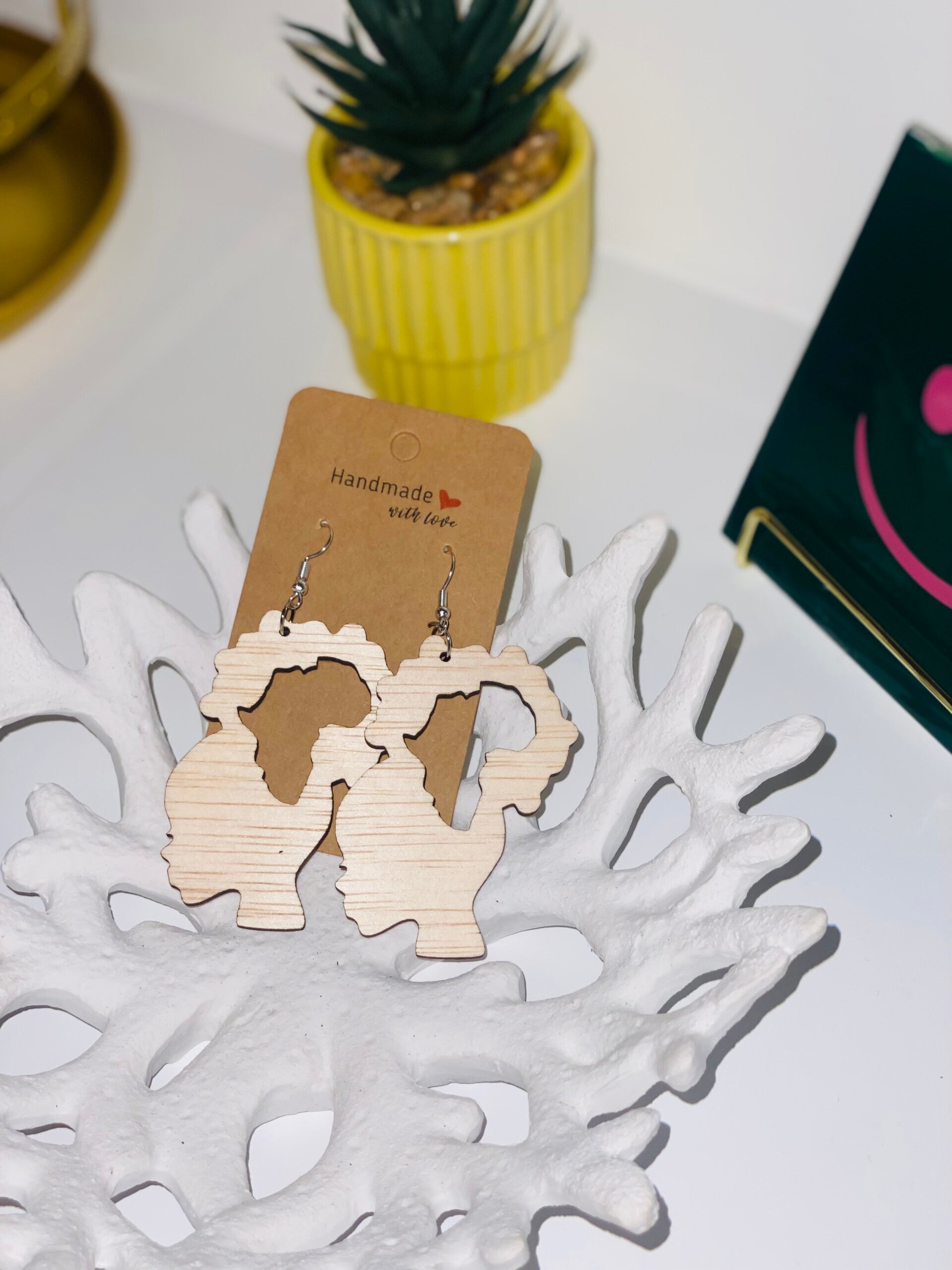 Deze handgemaakte oorbellen zijn met zorg ontworpen en uitgesneden uit hout en afgewerkt in een warme, opvallende kleur. Het silhouette-design geeft de oorbellen een krachtige uitstraling en maakt ze een echte eyecatcher.