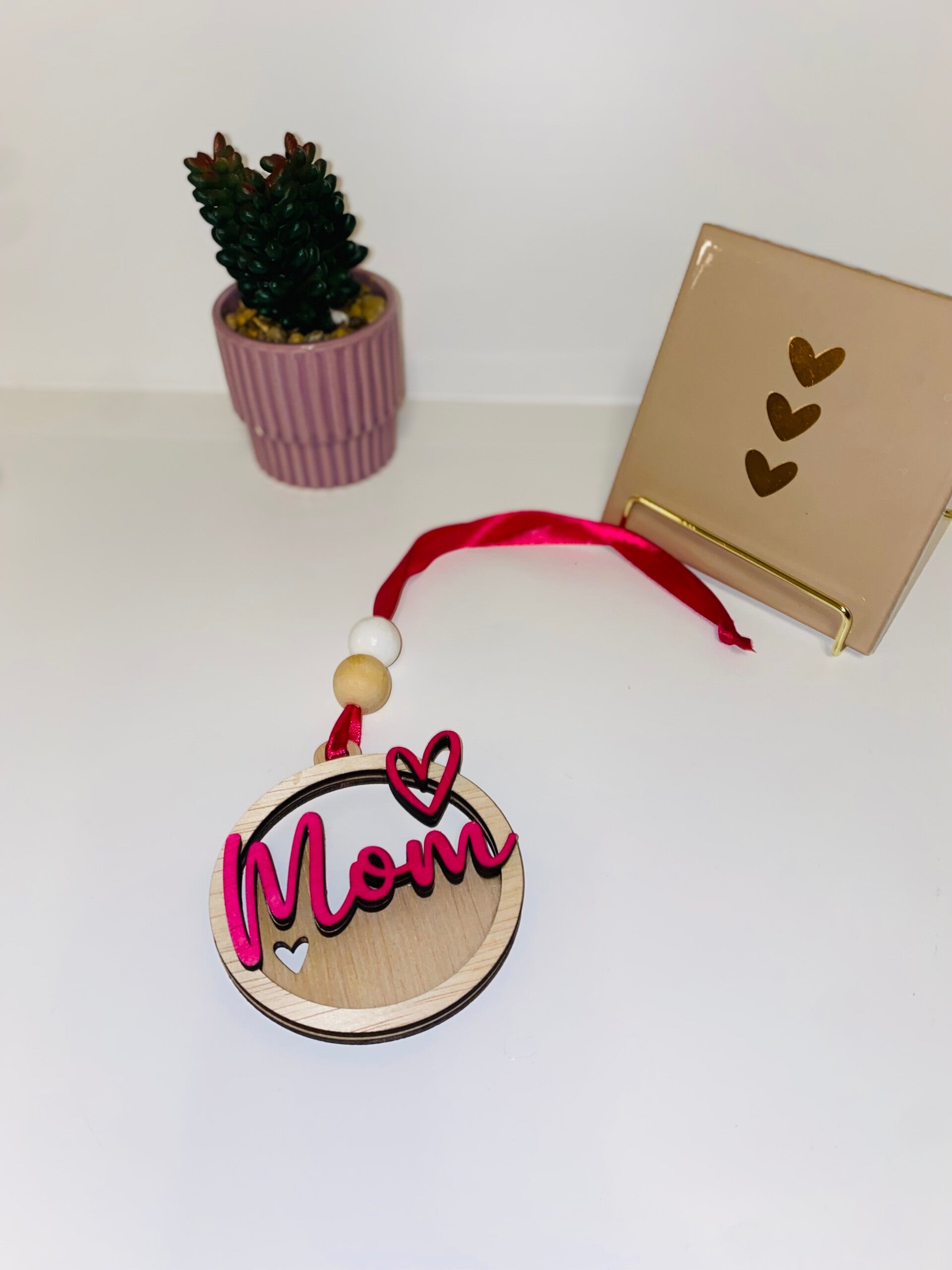 Liefdevol Mom Cadeau – Laser Gesneden Autohanger met Details