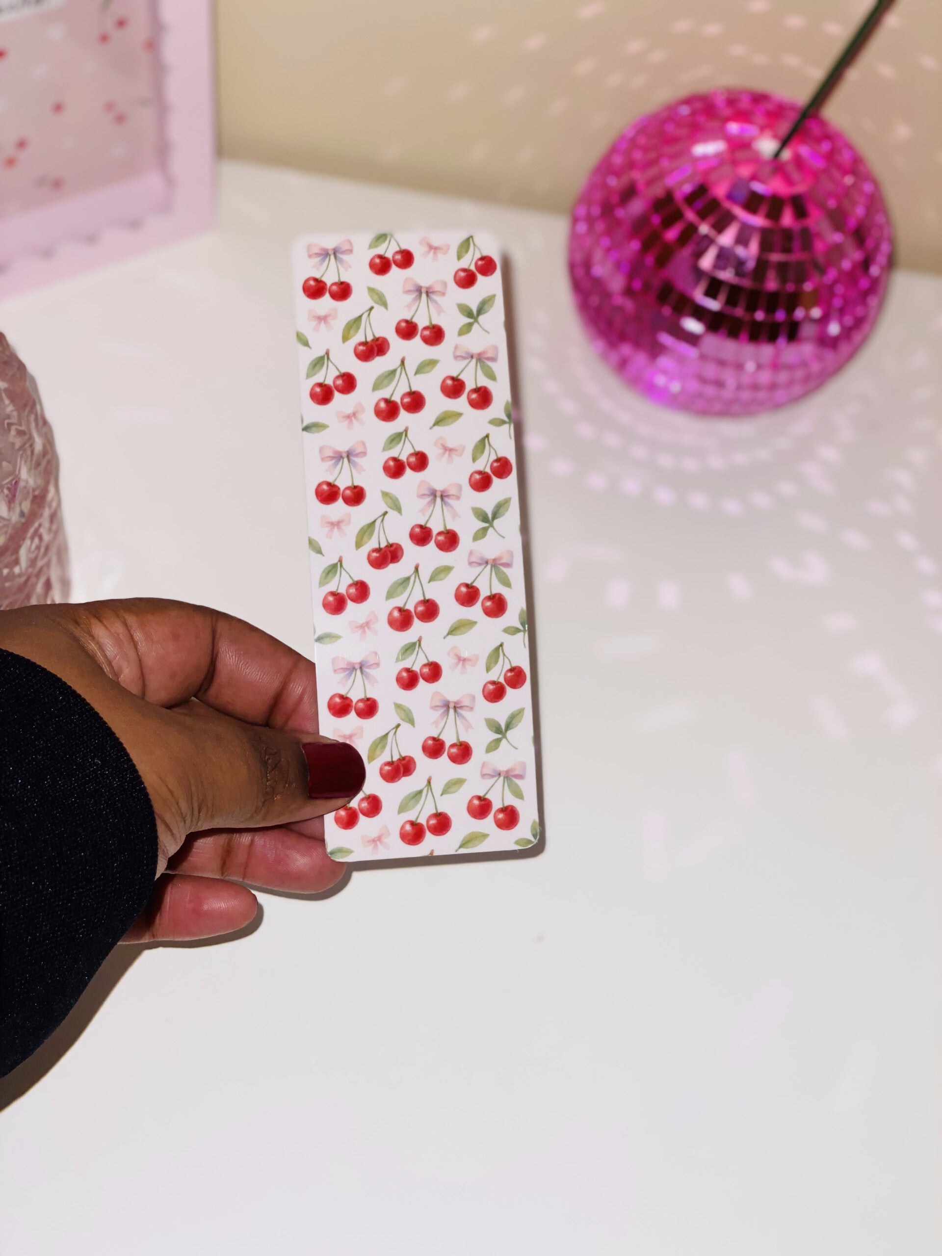 Deze bladwijzer is met zorg ontworpen, bewerkt en geprint in een schattige cherry stijl met strikjes 🎀✨