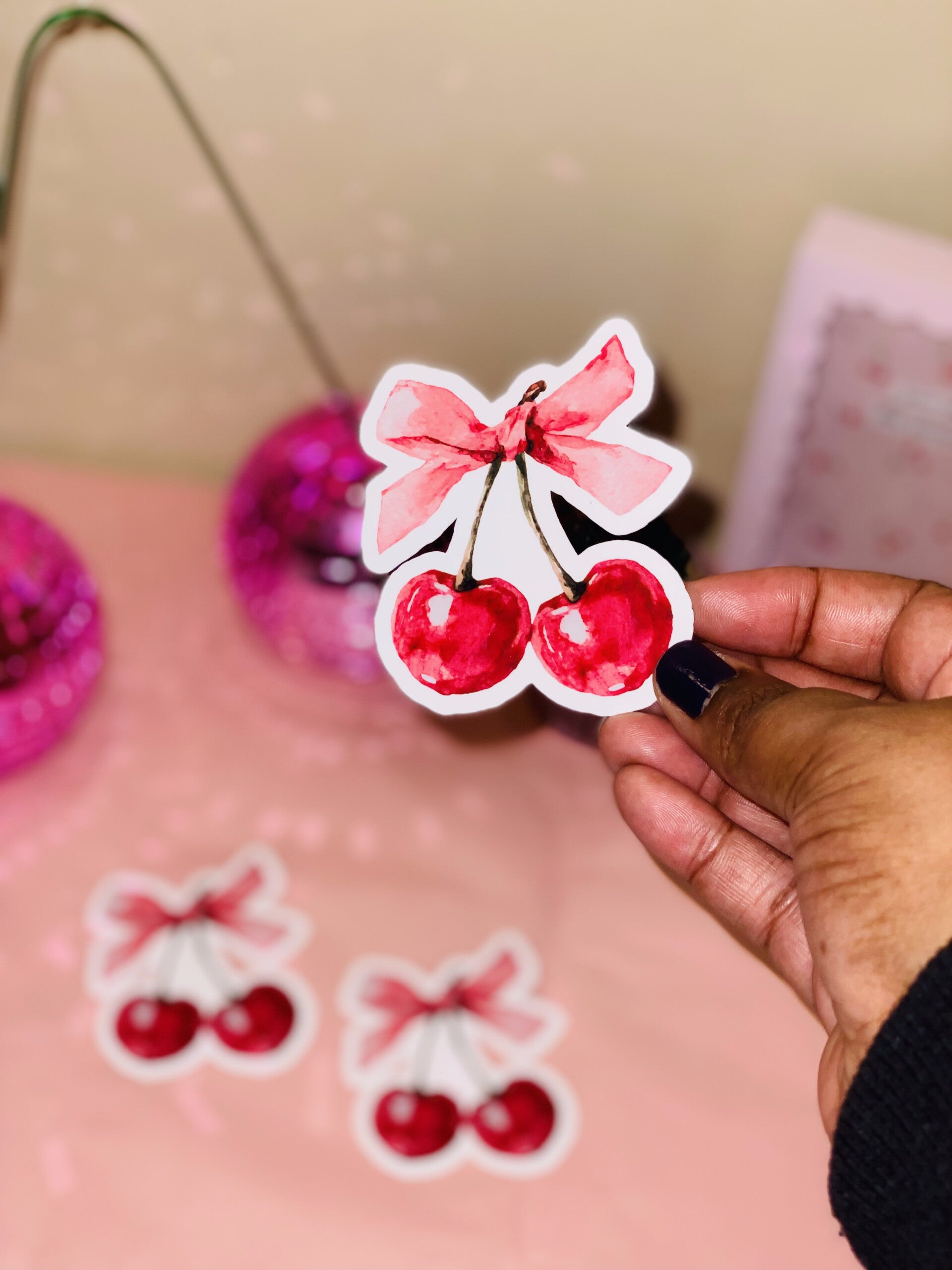 Watercolor Cherry Bow Sticker 🍒🎀💕 (5 cm)