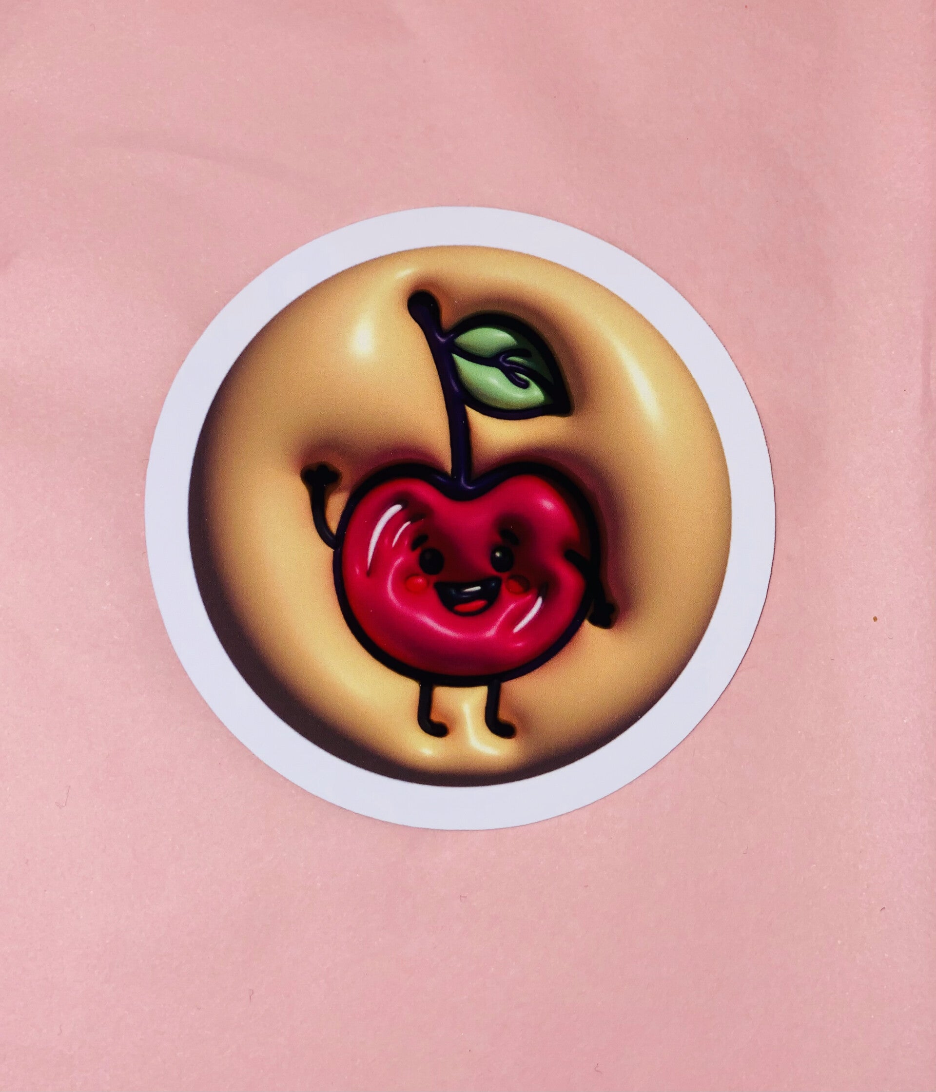 Met een formaat van ongeveer 5 cm is deze sticker ideaal om overal op te plakken en een glimlach toe te voegen 🍒✨