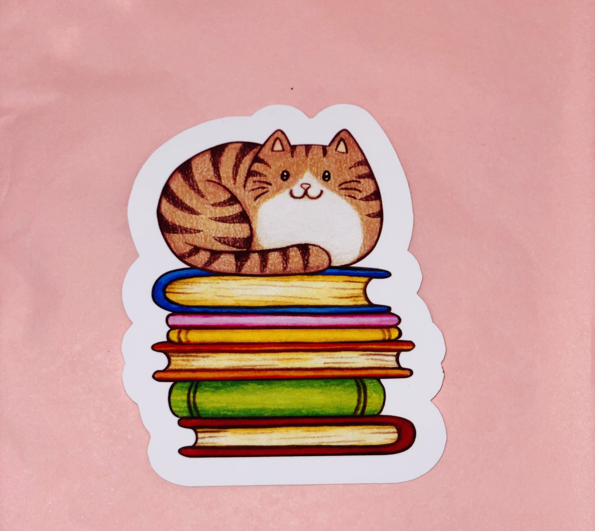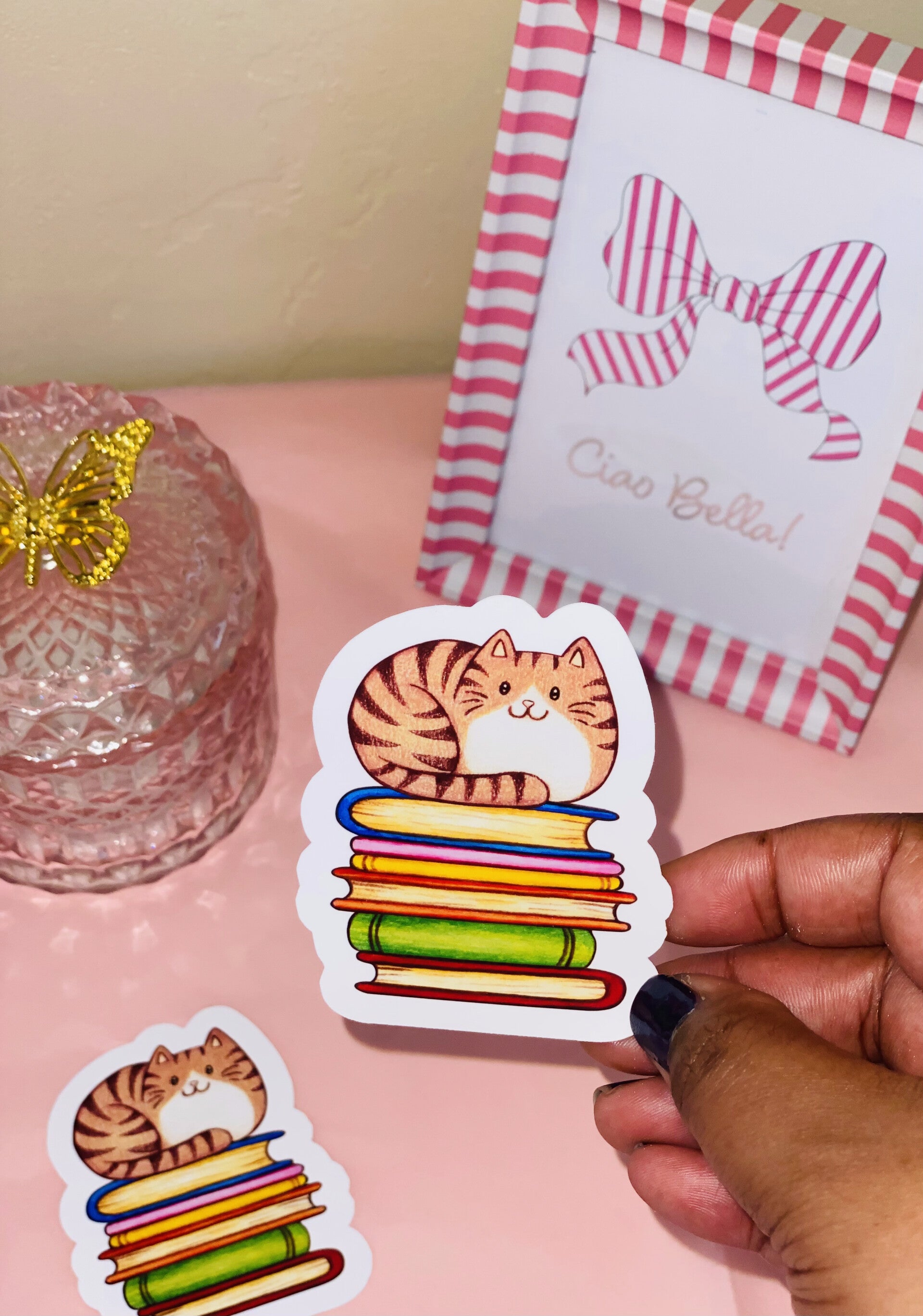 Deze schattige kat met boeken sticker 🐱📚 is perfect voor alle boekenliefhebbers en stationery fans 💕